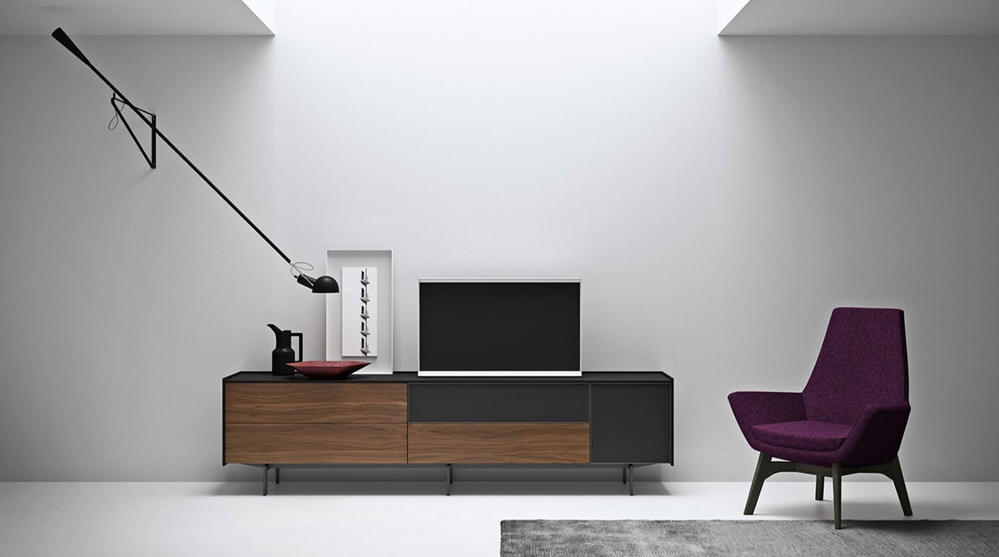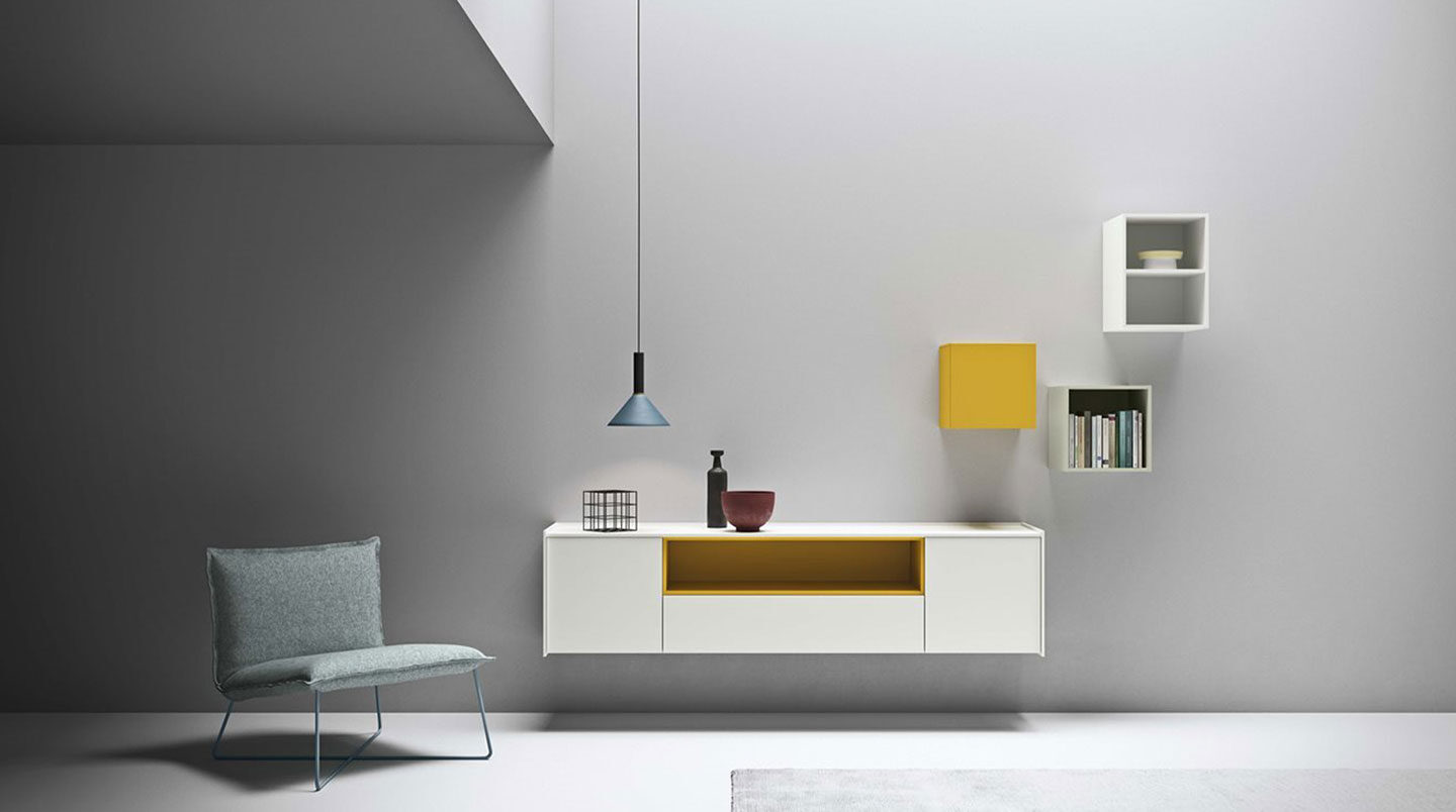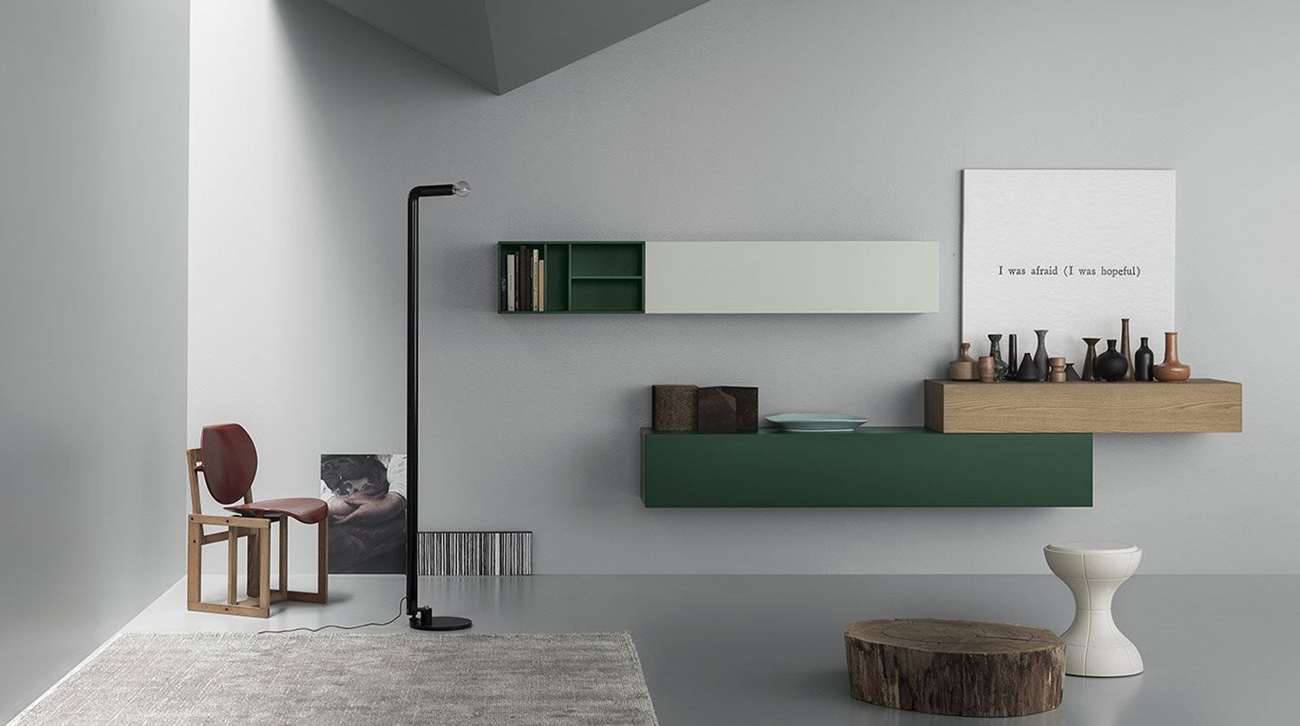 La modularità degli elementi consente di creare composizioni in sintonia con gli spazi e le esigenze più diverse. Moduli libreria disponibili in diverse altezze, larghezze e profondità per permettere molteplici soluzioni.